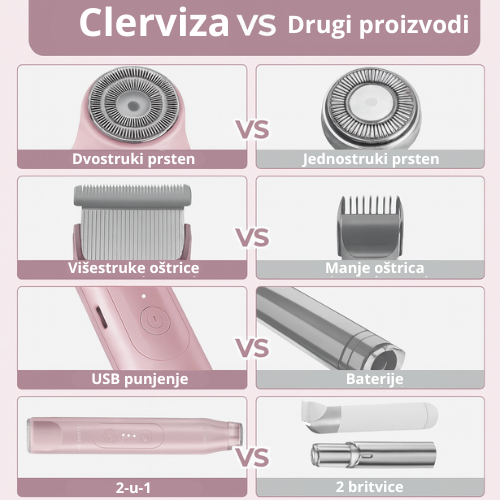- Višestruke 2-u-1 oštrice — za bikini, pazuhe, noge i lice.